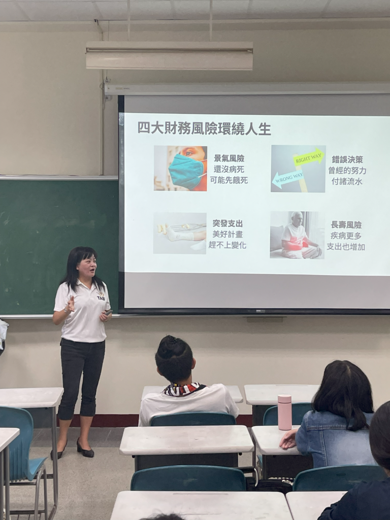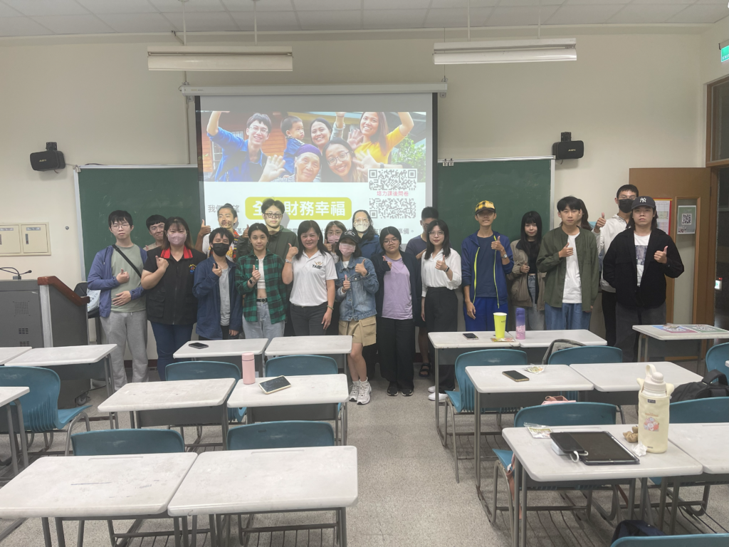 今天學生上課都很認真,也有不少的交流互動,課後也有學生踴躍發問。最開心的當然是讓學生覺得上完課很有收穫,因為有好的理財觀念,對於往後的人生規劃都有很重要的影響。